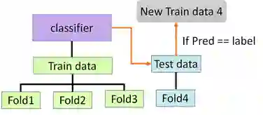 自动构建的训练数据去噪模块:基于规则和简介分类模块可以得到部分分类样本,但是这些训练样本不可避免的会引入噪声,所以我们引入 N-折交叉训练预测自清洗数据,进一步保留高置信的训练样本,清洗思路如下图所示。