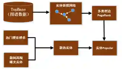 新热实体的 Popularity 调整:新热实体的含义为最新出现的热门实体。这类实体需要较高的 popularity 值。但由于是新近出现的实体,其与其它实体的链接关系非常匮乏,因此无法通过基于实体链接关系的这类方法来计算。对此我们采取的方案侧重于对新热实体的发现,然后对发现的新热实体的 popularity 进行调整,使其 popularity 值在同名实体中处于最高的位置。新热实体的发现目前基于两类方法:一类方法发现的热门实体可以直接对应到知识库中的某个实体,另一个方法只能发现热门的实体名,需要通过一些对齐方法与知识库中的某个实体关联起来。