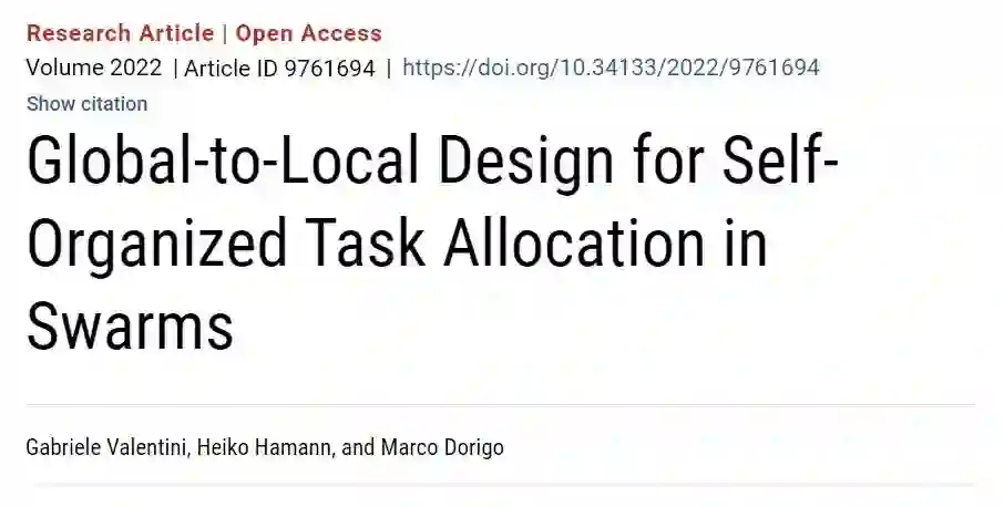对机器人群体进行建模往往很困难,因为系统要求在群体层面(即全局)制定策略,而控制规则需要在单个机器人层面(即局部)进行设计。群体智能的研究人员为自组织任务分配已开发了丰富的算法框架,使得自组织的多代理系统通过代理之间以及代理与环境之间的持续交互来实现任务分配。然而,目前的研究主要采用从局部到全局的设计方法,这种自下而上的方式在预测群体行为方面必然面临着巨大挑战。此外,标准的多代理方法需要复杂的合作策略,也没有考虑不可靠代理的情况,因而不具备良好的可扩展性,不适用于大规模群体智能的任务分配。