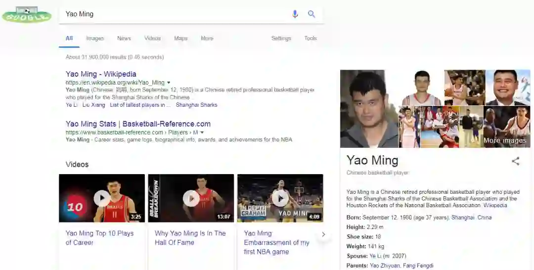 图1 “姚明”在谷歌搜索引擎中的搜索结果