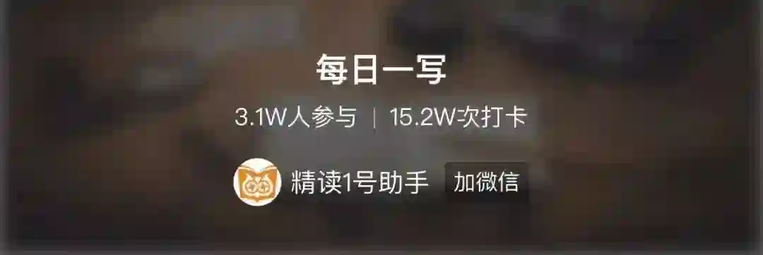 “每日一写”或“晨读打卡”,累计打卡超过50天的读友,精读君赠送终身成长词典3个月使用权益,不重复赠送。达标后,请联系精读1号助手(微信号:jingduzhushou)领取。