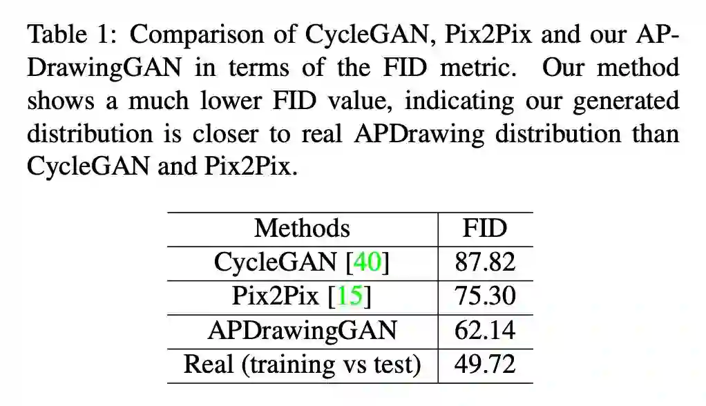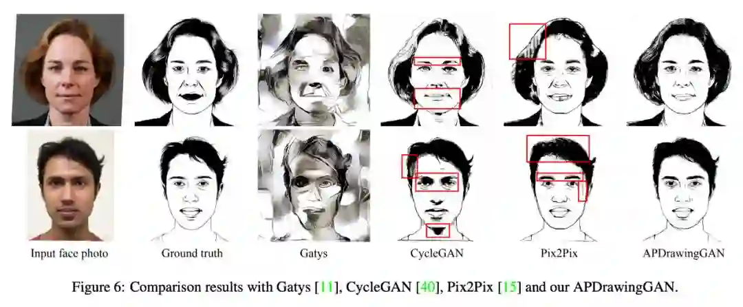 和已有的方法,APDrawingGAN 也与时下的模型进行了定性和定量上的对比。