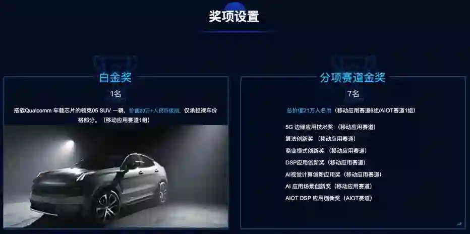 (3)获胜者名单:白金奖和分项赛道金奖获得者名单(2020 年 8 月 5 日后公布)将发布于大赛官网( https://qualcomm-challenge.com)。