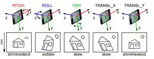 上面这幅图(Cenek ALbl, CVPR’16)描述了拍摄瞬间不同的自运动(ego-motion)模式所带来的不同的形变类型。