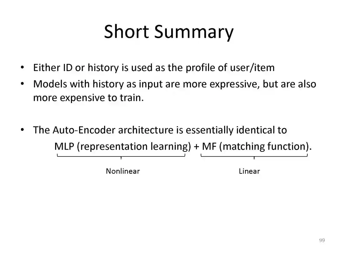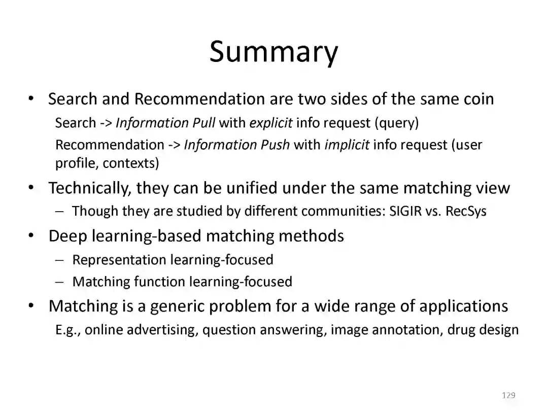 最后总结搜索和推荐两个应用都可以统一到matching视角下。