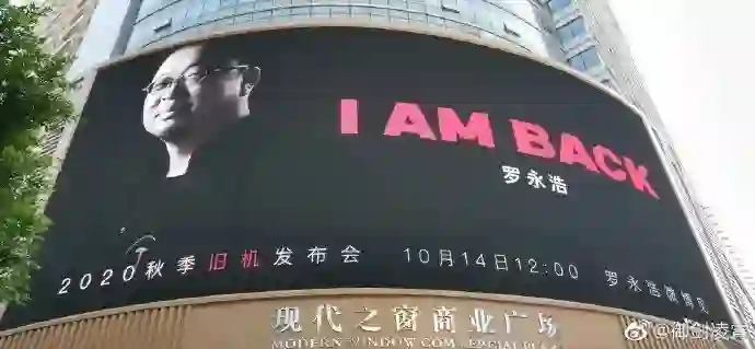 近日有网友在某广场广告荧幕上发现了一张“I AM BACK”的海报,该海报透露罗永浩将参加此次锤子手机的秋季发布会。时间为本月14日中午12:00,进行。