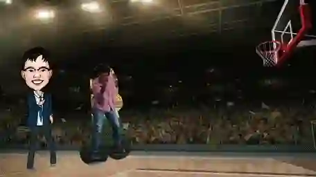 这是一个篮球场,所以当然是让卡通人来打篮球: