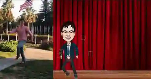 比如,一键把视频里人物的姿势,转移到卡通形象的身上: