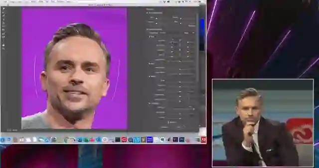 演示的小哥哥,拿着主持人的照片,现场展示了从P图到识别,再到还原的全过程。