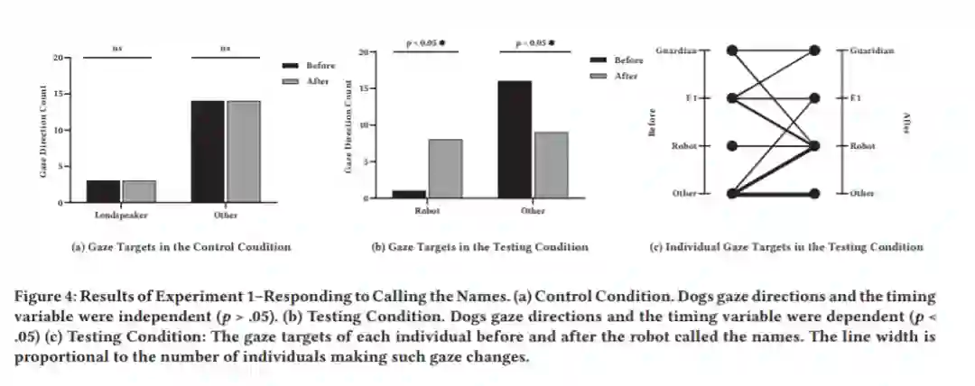 观察到的行为即:狗将机器人视为人类代理人,机器人的行为创造了对狗的指挥压力,或者机器人提供的多模态(即语言和视觉)反馈,比人类的指挥指令更为稳定。