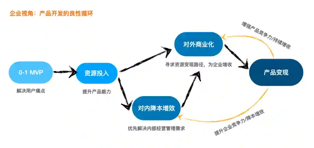 商业化切入点。往往需要通过市场/客户调研、业务调研等方式来评估需求真伪以及投入产出比;还需要最小可行性产品去做冷启动、获客转化等方式来验证产品的商业化可行性。