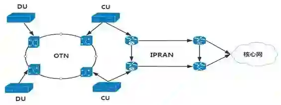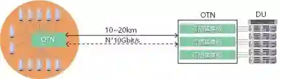 固网侧和无线侧之间可以通过光纤进行传递,远距离传递主要是有波分产品来承担,波分产品主要是通过WDM+SDH的升级版来实现对大量信号的承载,OTN是一种信号封装协议,通过这种信号封装可以更好的在波分系统中传递。
