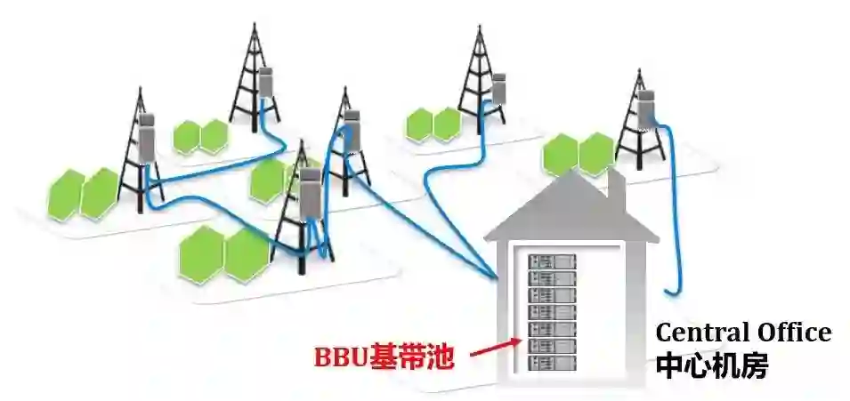 除了RRU拉远之外,它把BBU全部都集中关押起来了。关在哪了?中心机房(CO,Central Office)。