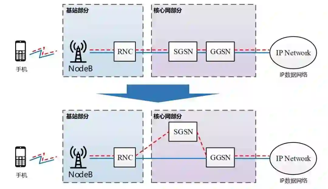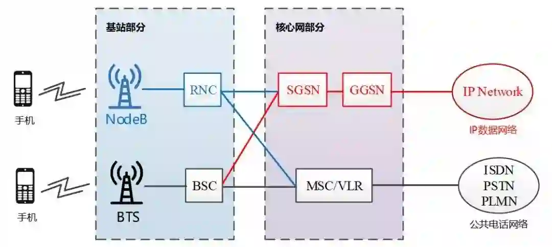很快,基站部分跟着变,2.5G到了3G,网络结构变成了这样: