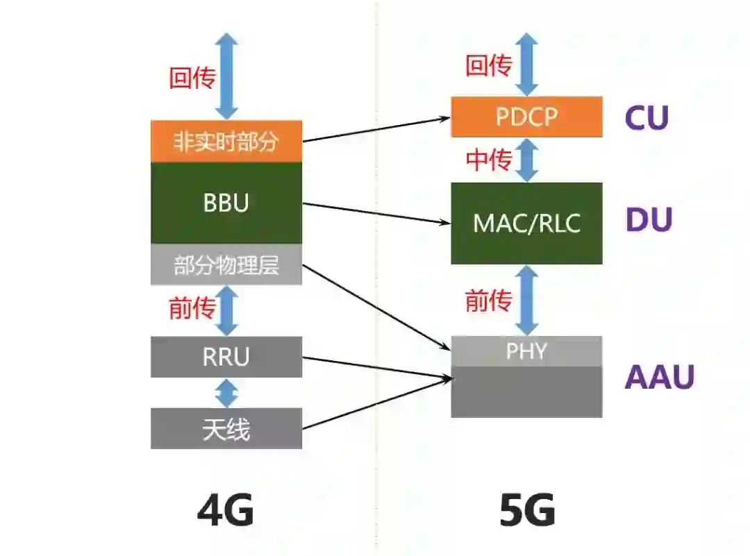 DU:BBU的剩余功能重新定义为DU,负责处理物理层协议和实时服务。