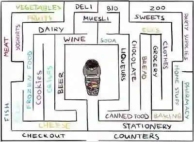 当你在超市中搜索时,心里可能会想:现在我在肉类区域,所以接下来可能到水产品区。这些都应该是相近的。如果你预测错了,可能会惊讶:诶?怎么是蔬菜区?从而得到奖励。这就会激励你进一步寻找,直到找到目标。