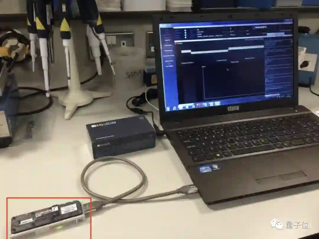 然后连线插进电脑,再配合软件使用,就能近乎实时地查看你的DNA测序结果了: