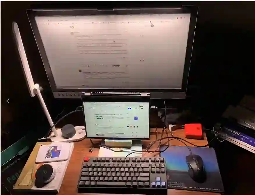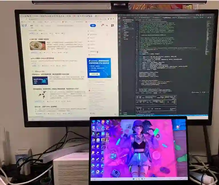 无论是上面的还是下面的屏幕都不反光,看的很清楚,简直太棒了~看代码打游戏啥的没有任何问题,感觉普通屏幕,使用挂灯,让周围环境光充足起来,这样眼睛就不会太容易疲劳了。毕竟算是生产力了,屏幕挂灯用了就不会回去了。这篇就讲这么多吧,下一篇就还是大家熟悉的技术文了~