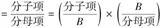 重点现在就要让内蕴物理量参数B重返公式,不要被除时而消去掉,具体做法就是将此参数分别乘上前述各式以波长代号的分母项与分子项,其整数比例关系并不会因此而改变,然后将前述各式中间等号左边之符号比例项经适度调整并分立成两项比例的乘积,同样思路也用在前述各式中间等号右边之整数比例项,经适度调整也分立成两项比例的乘积,整个推演计算过程重新整理成新的关系式如下: