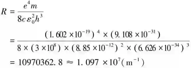 上述经相关物理常数计算值,以及前一单元自创新法里对实验波长数据所做的里德伯常数R推算值,都和当年能被大家接受的四位有效数字的值[7]完全一致,因此,本研究要找的内蕴物理量,其本质内涵就是经量纲分析所得里德伯常数的式(4)里所用基本物理常数关系式,这也与玻尔理论所推得的形式及内涵完全一致,至此,也验证了本文于进行研究前所做的两项假设事项。