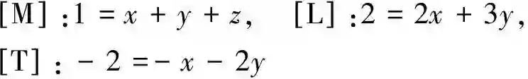 就量纲的一致性对照上式不同基本量纲其已知与未知之间的量纲关系,可分别找出下列联立方程组: