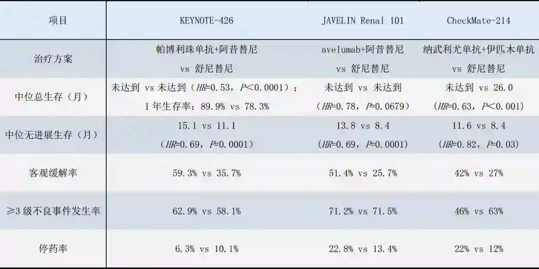 表1.免疫疗法一线治疗肾细胞癌疗效比较