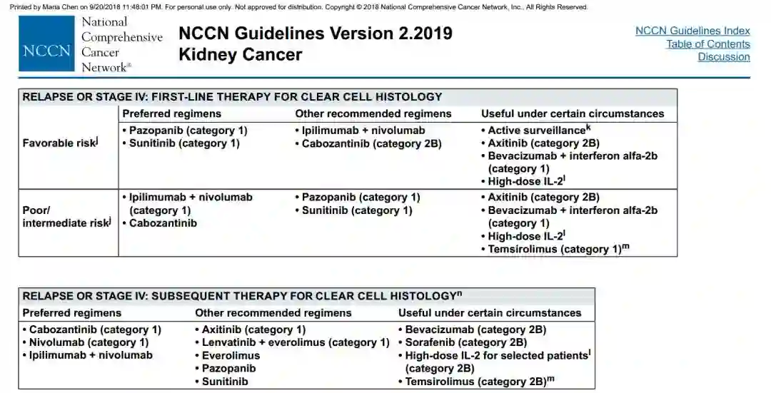 图4.NCCN指南晚期肾透明细胞癌治疗策略