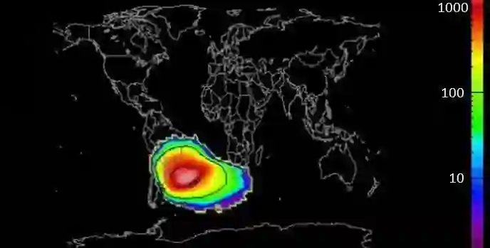 更进一步,甚至现在我们所经营的现代生活方式,也会不复存在。我们已经在一个叫做南大西洋异常区看到了这一点。南大西洋异常区是地球上一片地磁最弱的区域,覆盖范围遍及南美洲南部及南大西洋海域。
