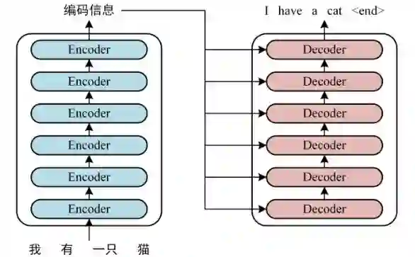 首先,我们来看 Transformer 的整体结构,如下是用 Transformer 进行中英文翻译的示例图: