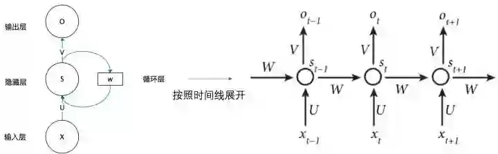 下图是一个简单的循环神经网络,它由输入层、隐藏层和输出层组成。