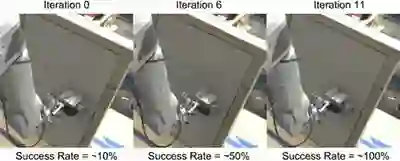 通过观察学习奖励函数后,我们用它来引导机器人学习开门任务,只使用图像来评估奖励函数。通过初步的动作演示和奖励函数,机器人动作的准确率从10%提高到100%。