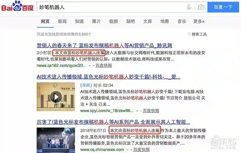 随着大数据、云计算和AI算法的快速突破,AI落地场景愈加丰富。在这短短三年间,腾讯Dreamwriter、新华社快笔小新、第一财经DT稿王、今日头条Xiaomingbot以及蓝色光标的妙笔机器人等撰稿机器人在我国先后问世,逐步代替了传统新闻编撰的基础工作,AI+内容生产的应用领域已经初见成效。就在本篇专访即将发布之前,记者在网上搜索了“妙笔机器人”,已经看到了妙笔机器人为自己改编的传播稿。