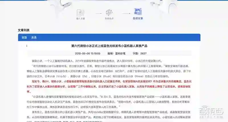 在改编完文章后,妙笔机器人可以和小蓝机器人家族的其他智能机器人进行合作,实现高效传播并不断优化模型。比如,它可以自动接驳到发布机器人(生花机器人)将批量文章一键自动发布到各个平台;它还可以结合情报来也舆情监测机器人对稿件进行实时跟踪监测,根据效果优化热点匹配模型。