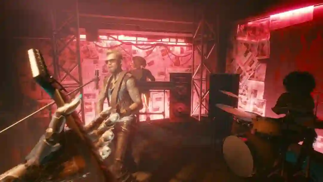 武侍(SAMURAI)乐队成员们的故事对这《2077》而言非常重要,但本作几乎把这些魅力四射的内容全部做到了支线任务(Side Jobs)里,即它们不是通关一个周目的必要条件。团队为什么决定把这些内容放到支线任务里,以及说到底,对于《2077》来说,「Side Jobs」到底是什么样的东西?Marcin:在《2077》中玩家可以自行选择,是想要更好地了解强尼·银手并成为他的朋友,还是忽视脑海中的这位入侵者,而武侍乐队的故事是强尼故事线的一部分,因此它们是可选的。然而,我们是希望玩家能够完成这些任务的,结果将是强尼变得对 V 非常重要,就像他对乐队成员们的重要程度一样;当然,这一系列任务的另一重要目标则是让玩家与克里·欧罗迪恩(Kerry Eurodyne)紧密相连。这些任务的设计是为了让玩家能切身体味,做一位真正的叛逆摇滚乐手的感觉,并且能够遇到音乐界各种稀奇古怪的人物。我们的原始素材《赛博朋克 2020》中关于乐队成员的信息非常少,所以设计者们从现实世界的音乐家职业经历中获得了灵感、尽情施展想象力。