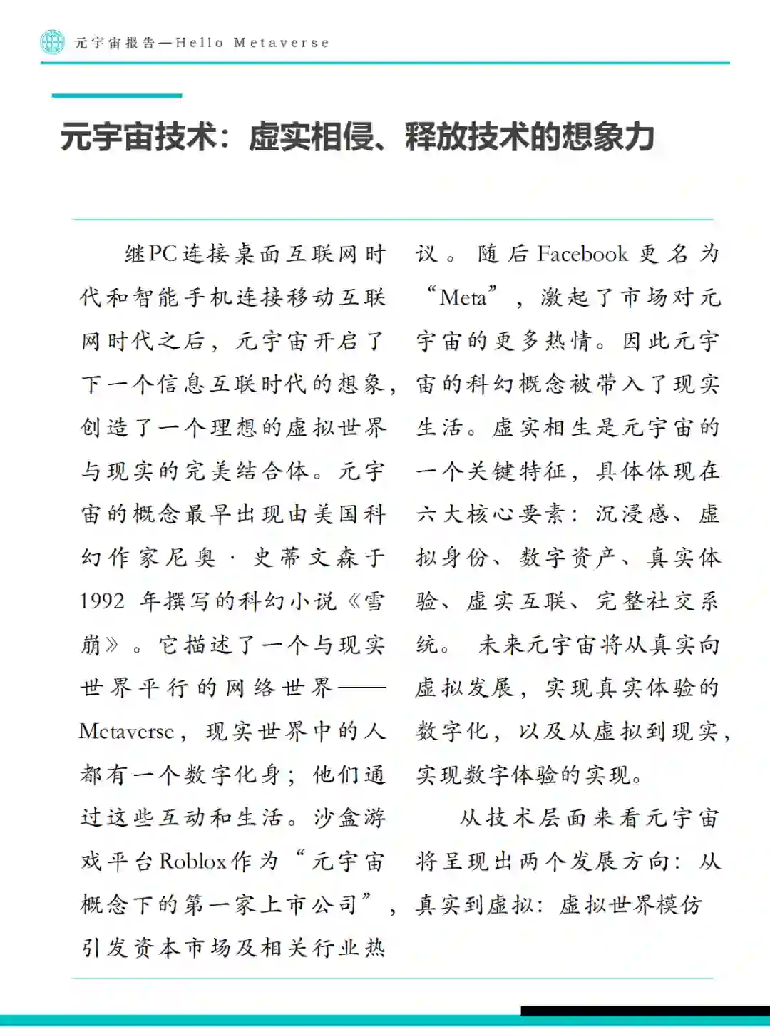 绍了元宇宙基本技术要素、商业应用及未来可能在虚拟世界中产生的重大影响。