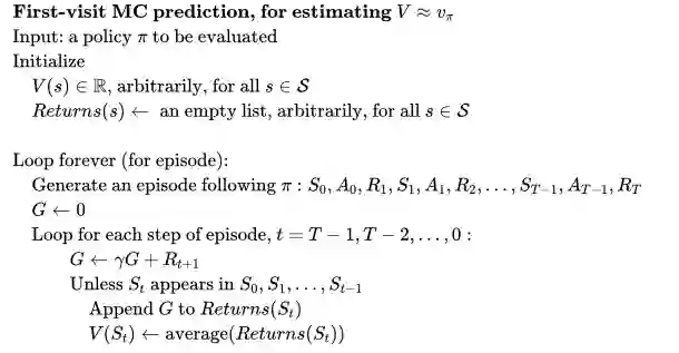 伪代码如下,注意考虑到实现上的高效性,在遍历 episode 序列数据时是从后向前扫的,这样可以边扫边更新 G。