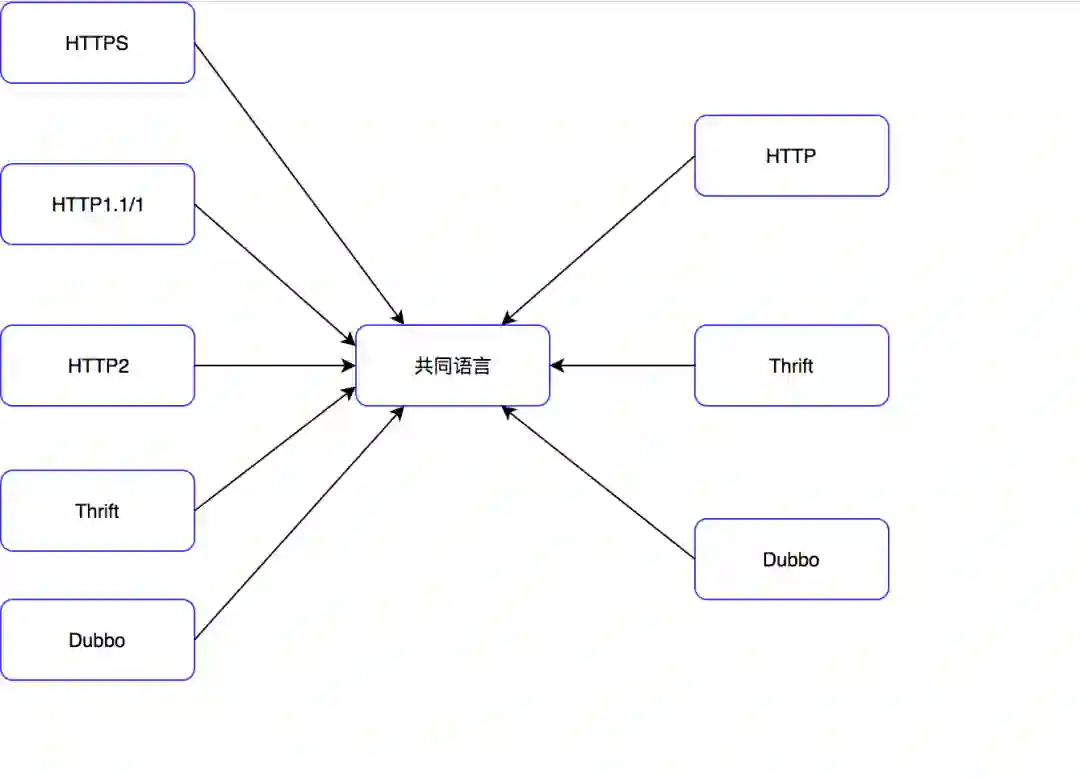 简单来说就是把两个协议都能转换成共同语言,从而互相转换,如下图: