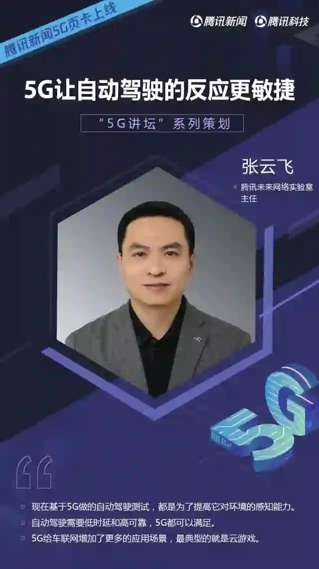近日,腾讯科技专访腾讯未来网络实验室主任张云飞,聚焦5G对自动驾驶、车联网行业的改变。
