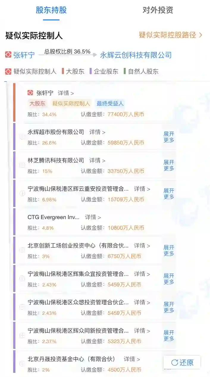 此次回购前永辉云创的股权结构 数据来源:天眼查