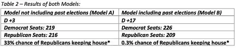 进一步分析这些数据,由于模型的性质,特别是在地区层级,该模型预测任何给定结果的原因变得困难。主要的阻碍因素是,神经网络只是一个大量权重和偏移组合,因此试图去理解神经网络的每次迭代对一组数据的作用是不可行的。然而,阻碍这个过程的更大原因是,该模型不是由一个,而是由成千上万个较小的模型组成的,这些小模型每个区域的结果平均计算得出的。因此,为了正确分析每个给定地区的结果,研究人员需要解剖的不是一个,而是成千上万个神经网络。然而,这并不意味着,对模型预测结果不能进行一般化的抽象。两种模型对11月的选举结果给出了不同的预测。尽管预测结果都是民主党会领先于共和党,但是领先的优势是不相同的。模型A的预测结果是,民主党的优势较小,而模型B的预测结果是,民主党的优势较大。由于模型B加入了之前的选举结果,这可以表明,模型B已经分析出,现任政党的模式会在中期选举时表现地更糟糕。这种差异也表明,其他非人口因素有助于民主党获得更多的领先优势。