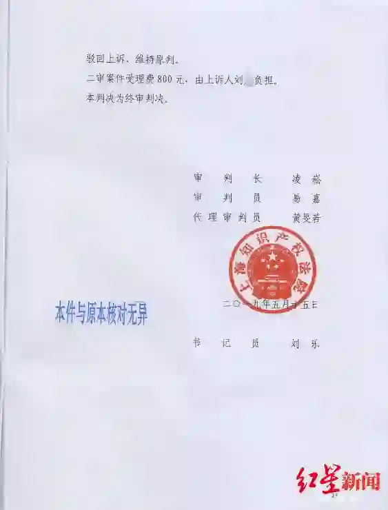 近日,该案二审宣判,刘毅上诉请求被驳回。上海知识产权法院相关判决文书显示,该院确认了一审法院查明的事实。
