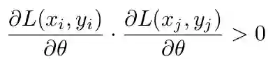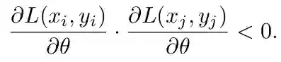 where (x i , y i ) and (x j , y j ) are randomly sampled unique data points. If we could maximize the dot products between gradients at these different points, it would directly encourage the network to share parameters where gradient directions align and keep parameters separate where interference is caused by gradients in opposite directions.