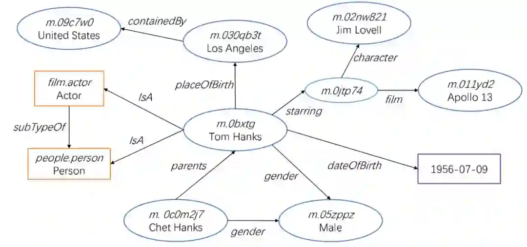 以上的数据集,除维基百科以外,其余都还停留在单独的实体、概念、关系层面,没有维护实体的属性值,以及实体之间的具体关系。维基百科页面中存在大量具有特定模板的信息表格( Infobox ),以半结构化的形式描述了实体的属性,以及和其它实体的关系。由于维基百科面向人类读者,半结构化信息较难直接被机器理解。为此,一系列研究工作旨在将维基百科中的半结构化知识进行组织,形成的结构化数据库包含了与实体相关的大量事实,我们称之为知识库(Knowledge Base),或知识图谱(Knowledge Graph)。