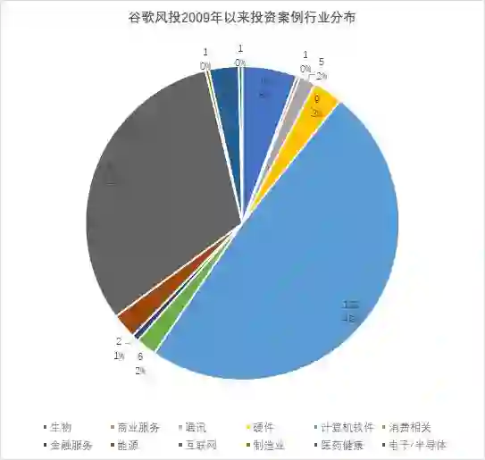 图 谷歌风投2009年以来投资案例行业分布