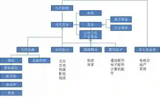当代集团为地产起家,是一家具有上市公司背景、从事房地产开发与物业管理的地产专业性公司。当代集团控股4家上市公司,包括当代东方(000673),国旅联合(600358)和厦华电子(600870),以及一家香港上市金控公司,其他非上市业务包括:部分地产、电视台等。