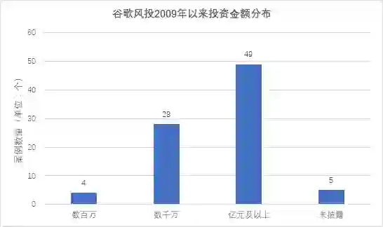 图 谷歌风投2009年以来投资金额分布