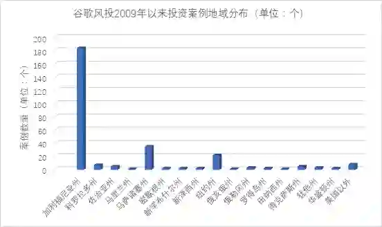 图 谷歌风投2009年以来投资案例地域分布