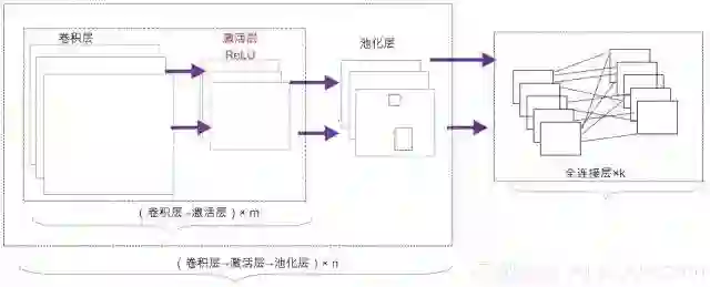 也就是说,可以先由m个卷积层和激活层叠加,然后(可选)进行一次池化操作,重复这个结构n次,最后叠加k个全连接层(m, n, k ≥ 1)。总体来讲,卷积神经网络通过多层处理,逐渐将初始的“低层”特征表示,转化为“高层”特征表示,之后再用“简单模型”即可完成复杂的分类等学习任务。因此在本质上,深度学习就是一个“特征学习(feature learning)”或“表示学习(representation learning)”。