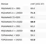 在下面的表格中,我们对比了 LRSSD300+MobileNetV2 在不同硬件设备上的运行时间,希望可以给大家一个更直观的认识。