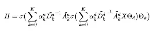 由于传播时文中定义"先从子辈汇聚信息", 再从"父辈汇聚信息", 所以本文的GCN传播为: